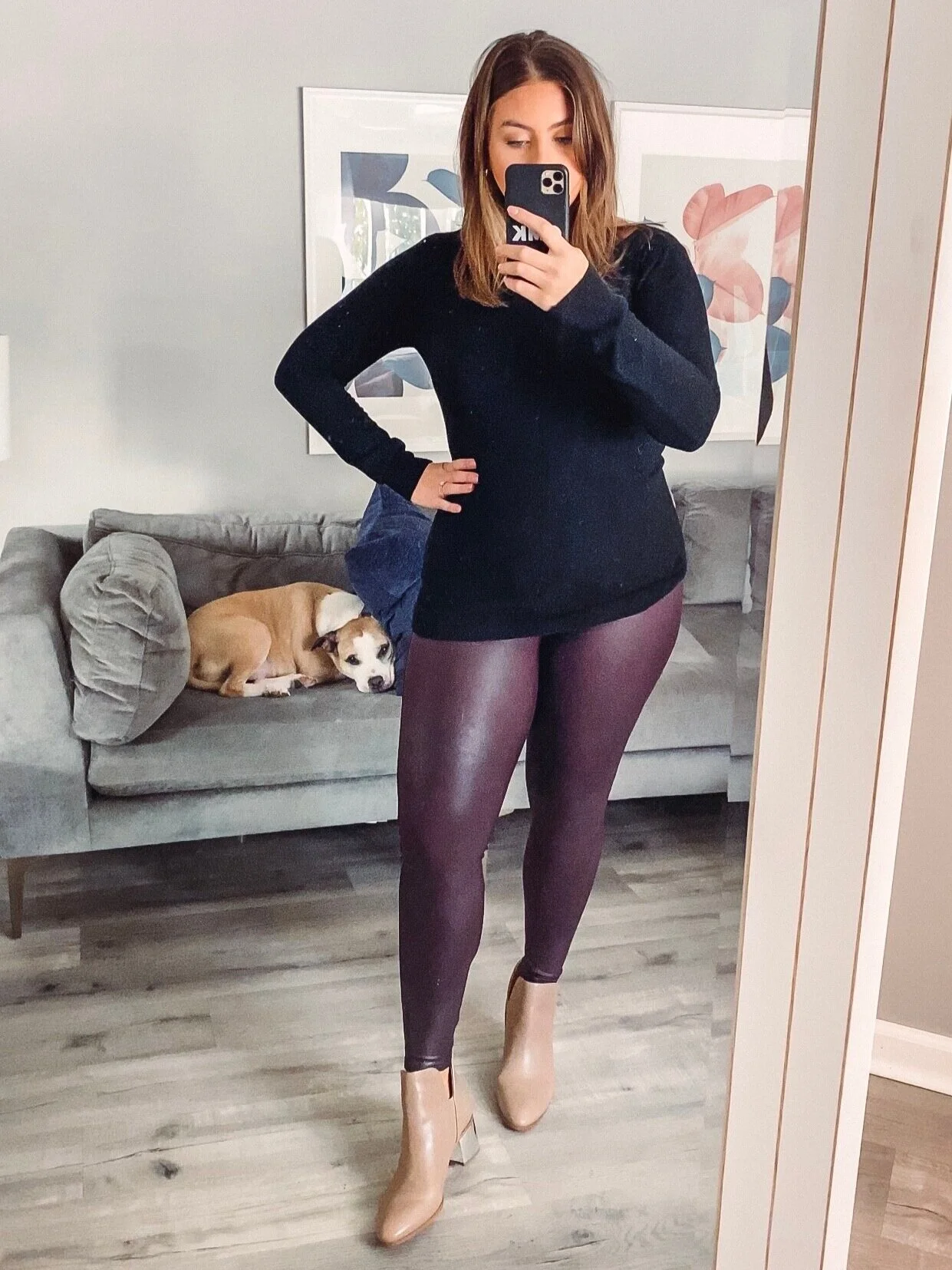 These are some of my favorite Spanx faux leather leggings (wearing XL in wine) but thought it would be fun to try in a new color! Pair with a long sweater and cute booties like these Franco Sarto Leather or Suede Boots to complete the look.