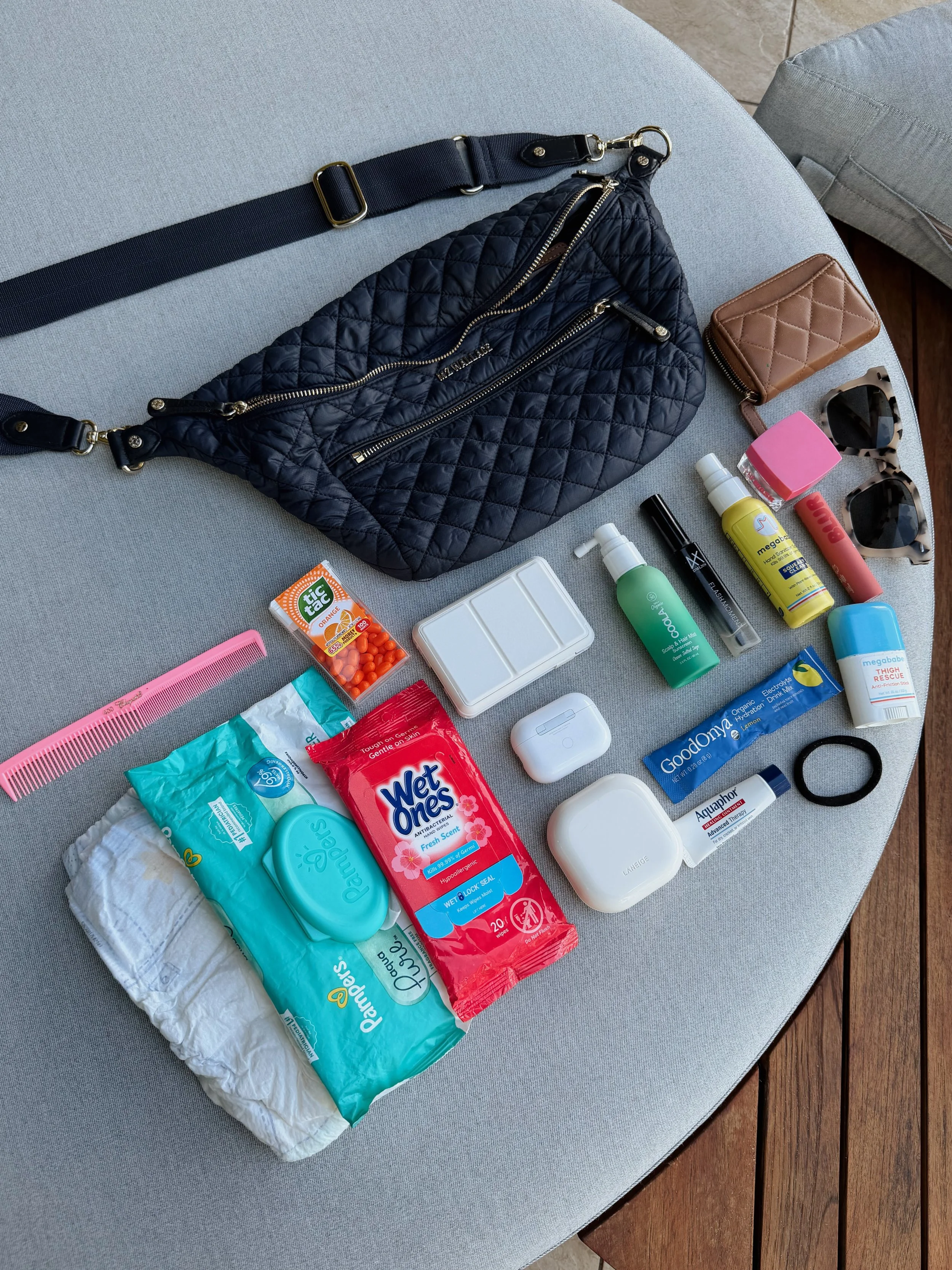 This “What’s In My Bag” is the real deal: part carry-on, part diaper bag, and 100% survival kit. From my go-to electrolyte sticks and mini beauty fixes to a few very mom-specific items, here’s exactly what’s inside, and why it earns a spot.