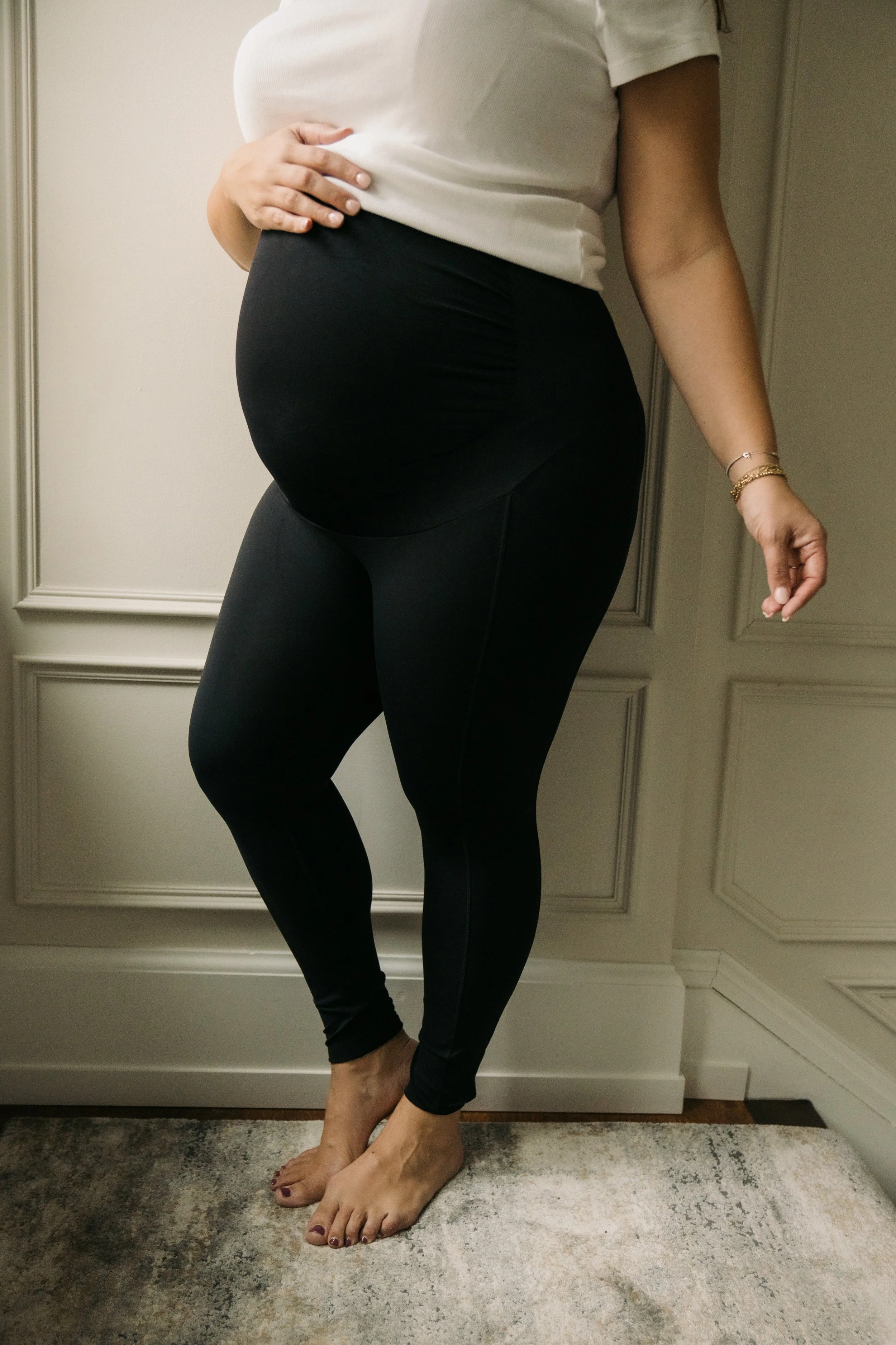 Quick fit tip: If your leggings are rolling at the waistband, it’s usually a sizing issue, not a design flaw. Try adjusting your size up or down depending on how far along you are and where you carry your bump.