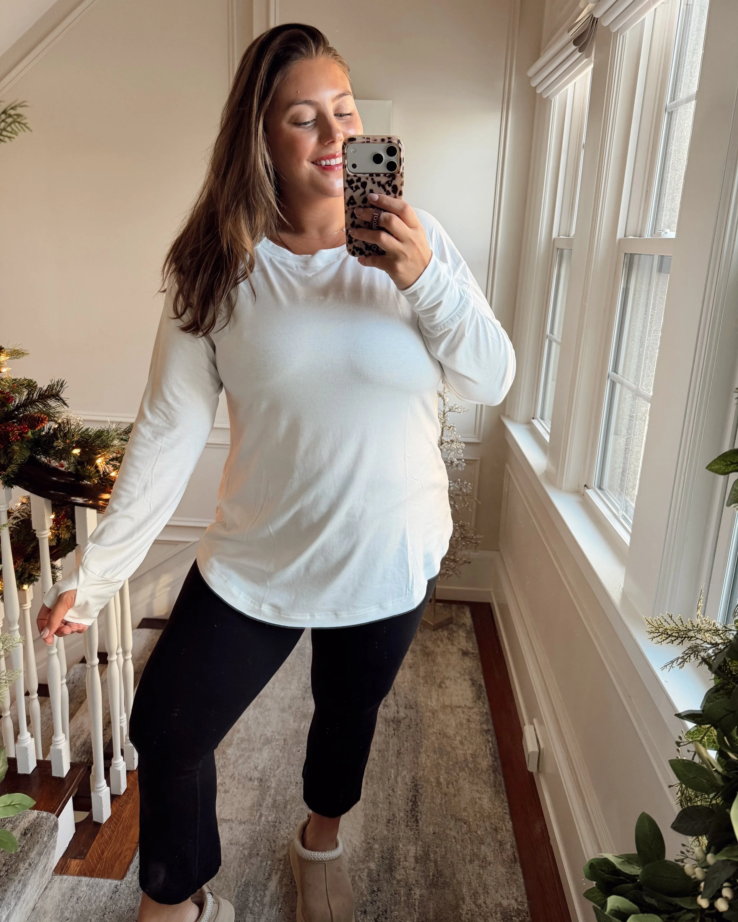 This long-sleeve tunic layering tee is one of those basics I reach for constantly, perfect for layering or wearing on its own with good coverage in the front and back. The fit is relaxed and easy. I’m wearing a XXL, but could have sized down to an XL for a slightly slimmer fit.