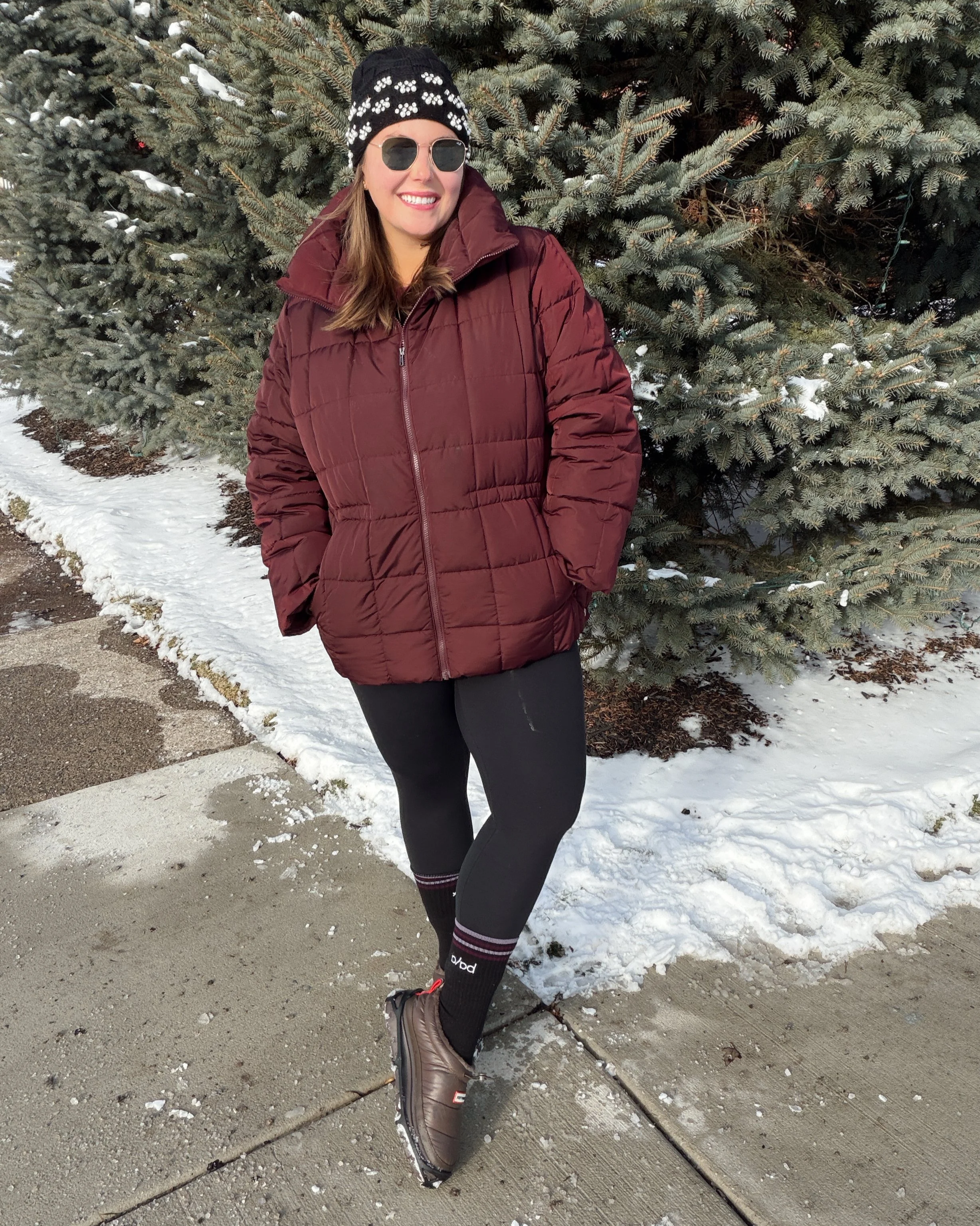 A great everyday winter puffer that hits at the mid-hip for easy layering and movement. The burgundy color adds a subtle pop while still feeling neutral enough to wear on repeat.
