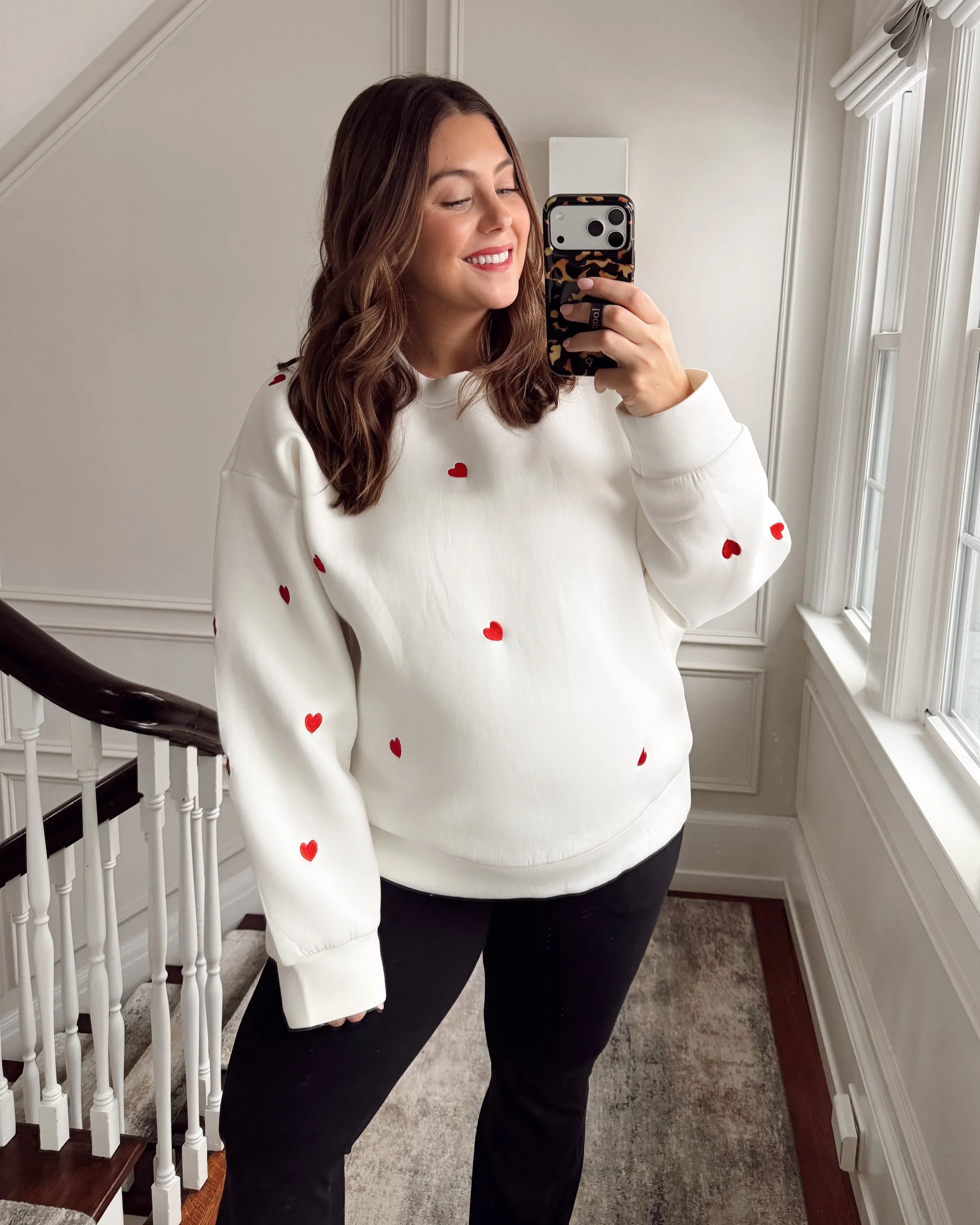 A fun, wearable sweater that still feels classic. I sized up to a 2X for a more relaxed fit, but it wasn’t necessary. Available in XS–3X, including petites, and it’s non-maternity but bump-friendly.